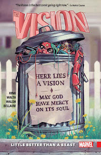 I always knew who the character Vision was by name and look but not much about his backstory. So when Marvel put out a Vision comic I was excited. The first comic wasn't what I expected but I still liked it. It basically takes places after Avenger's 2nd movie where Vision goes and tries to have a normal life with a cyborg family. Volume 4 goes more into why vision ended up with this family and how they were build. We get to see Vision's history with Scarlet Witch which was pretty sad to see why they broke up. There is a scene in this comic where the family goes out to dinner and orders food but tells the waiter not to bring it but they still want to pay for it. Trying so hard to be normal. What really surprised me was that this is the last comic in the series It was only 2 volumes. That was really odd to me. So where does Vision's story continue? Over in the Avenger comics? And what is the title of those comics? Again, Marvel confuses me.